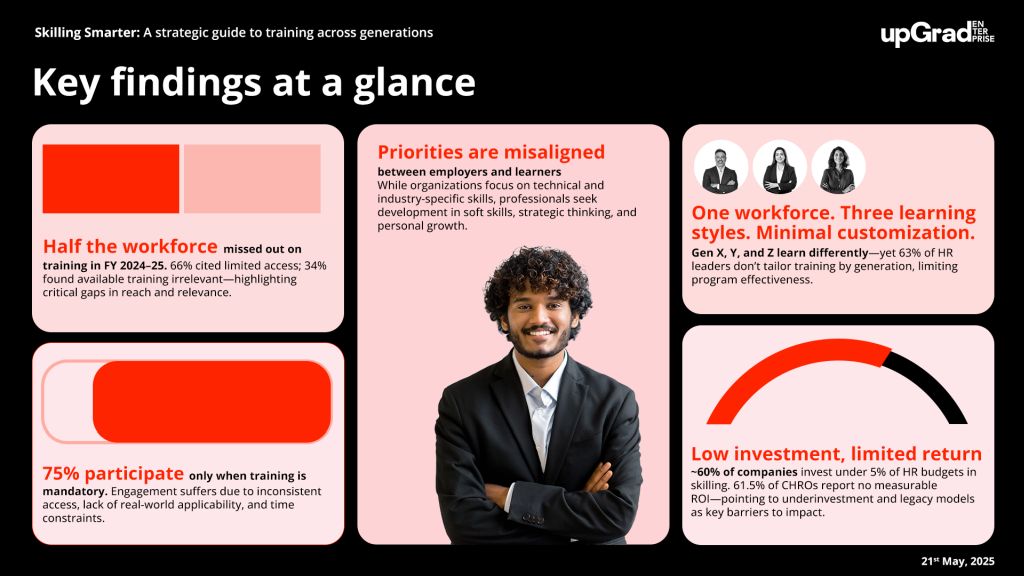 upGrad Enterprise – the corporate skilling division of Asia’s leading integrated lifelong learning company, upGrad has launched a groundbreaking industry report titled ‘Skilling Smarter: A Strategic Guide to Training Across Generations’.