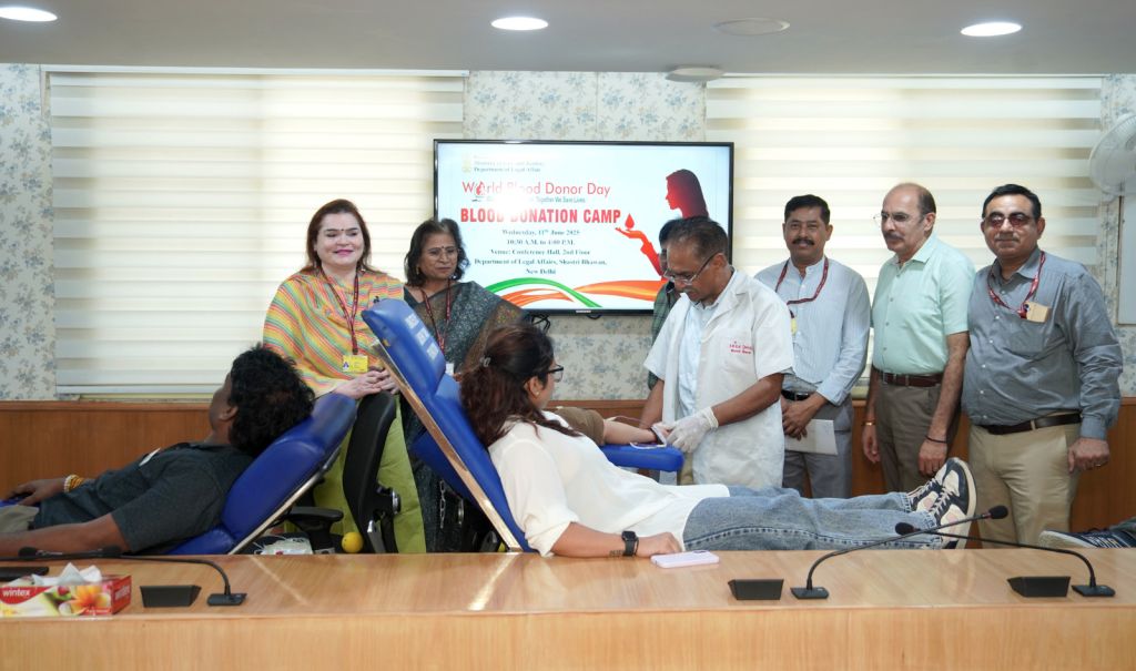 Looking beyond its core legal mandate, the Department of Legal Affairs under the Ministry of Law and Justice held a blood donation camp at Shastri Bhawan today, in association with the Indian Red Cross Society. The initiative was organised in the run-up to World Blood Donor Day, observed every year on June 14.