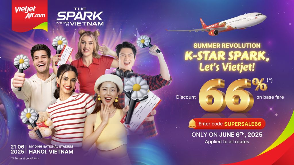 This limited-time offer is part of Vietjet’s celebration of the K-Star Spark in Vietnam 2025 international music festival, where the airline proudly serves as the official airline partner. The event will take place in Hanoi on June 21, 2025.